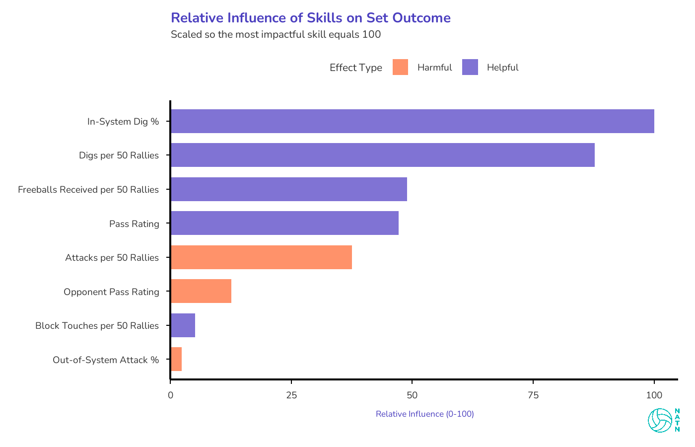 In-system dig percentage is the strongest single driver in the entire model.